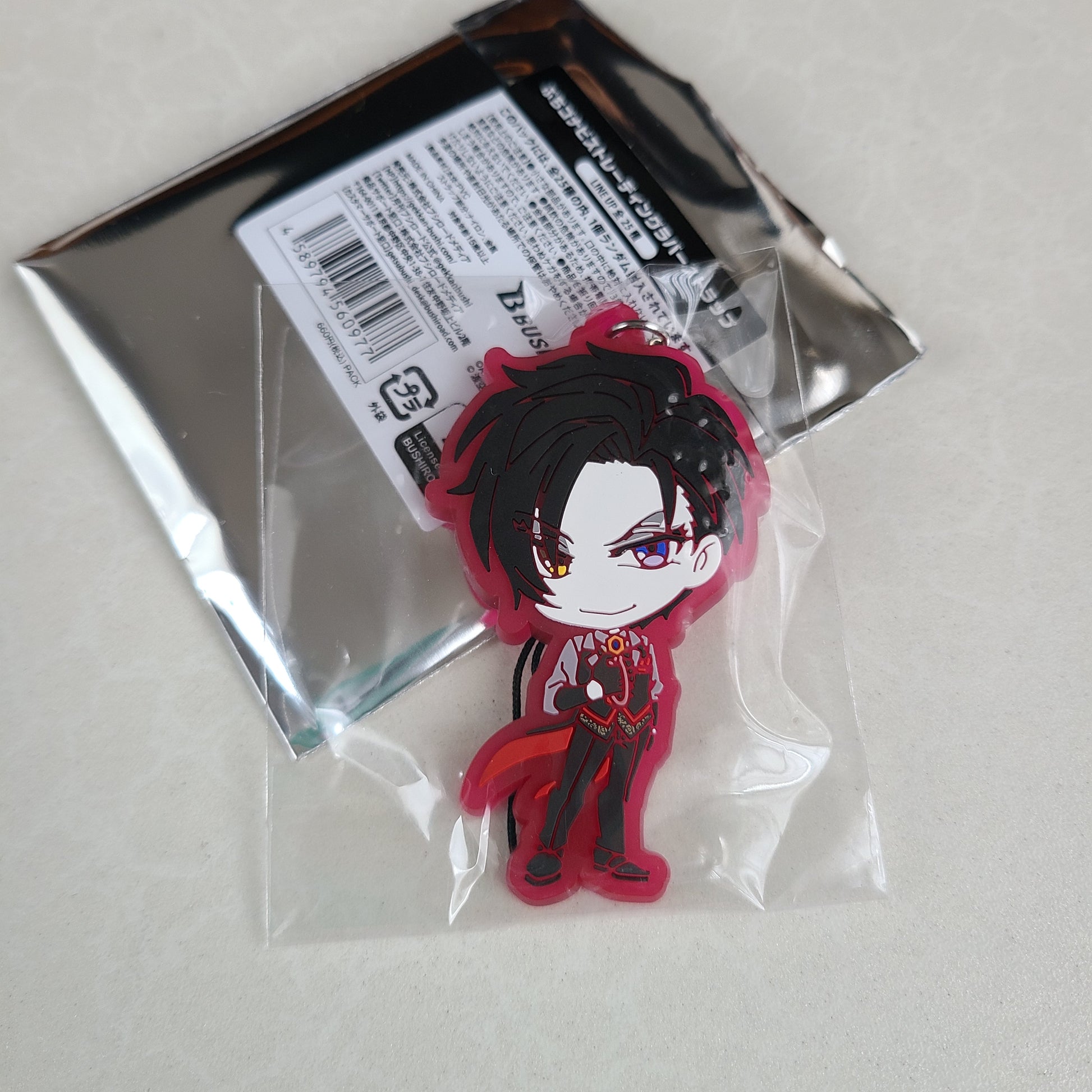 Mide aprox 5cm, forma parte de la banda Fantome Iris del proyecto Argonavis. Fantome Iris es una banda de VISUAL KEI, puedes revisar algunas de sus canciones en Youtube.